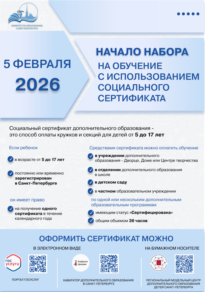 Запись в объединения и секции отделения дополнительного образования детей “Северное сияние” ГБОУ школа №102